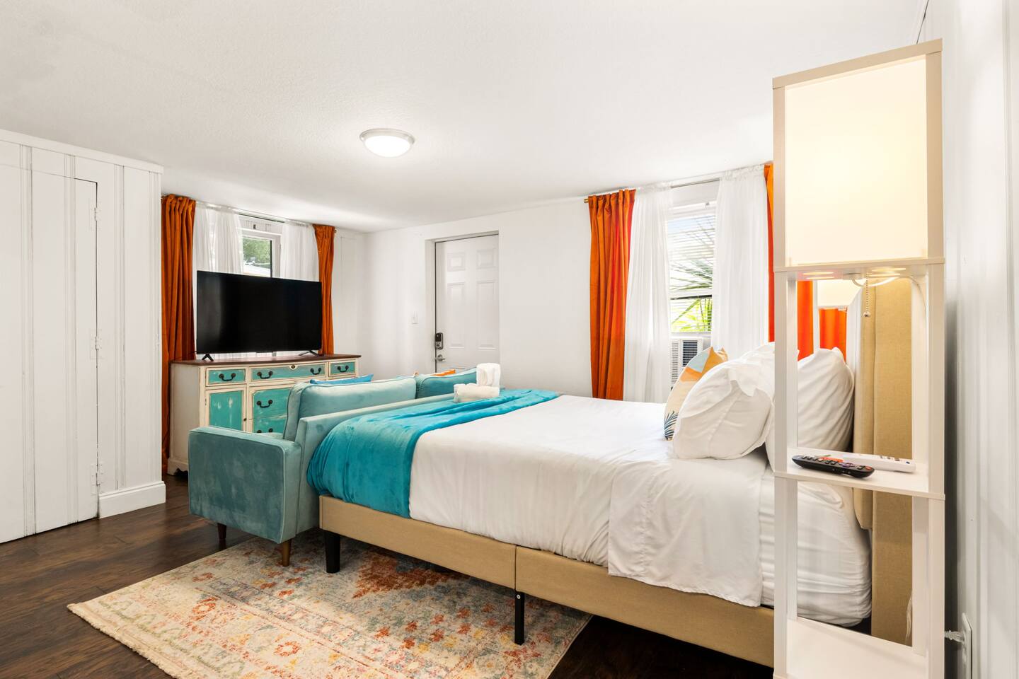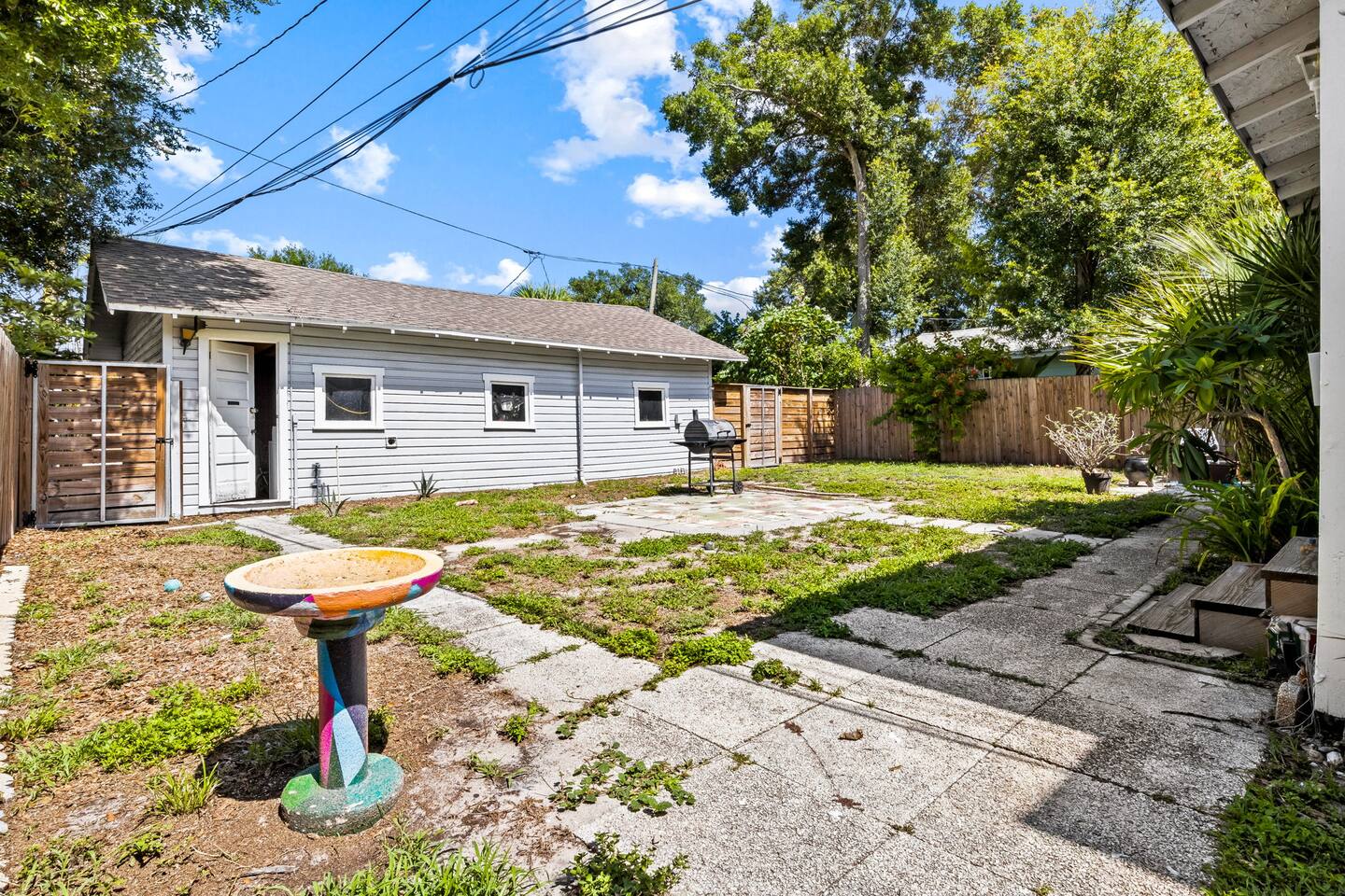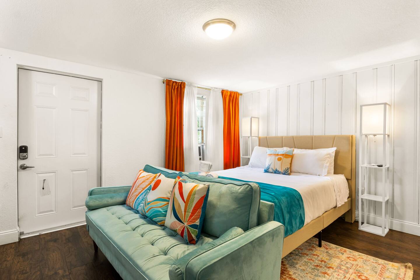 Nestled in the vibrant heart of downtown St. Pete, the Sunset Citrus Studio is an inviting first-floor studio apartment as colorful and warm as the city of St Pete. Inside, you'll find the world's most comfortable queen-size bed, when not out exploring St pete, you'll enjoy lounging with a book or catching up on your favorite series, with the 52-inch TV on the signature velvet couch. Our favorite part of the property is the historic brick roads and fenced in shared backyard for pet lovers!