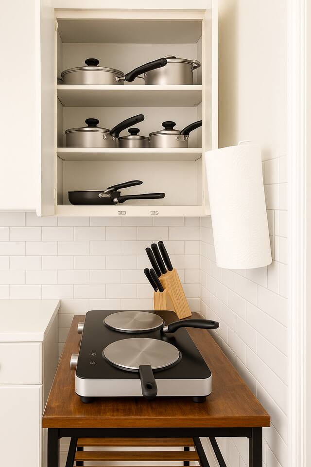 - Kitchen Space where guests can cook their own meals