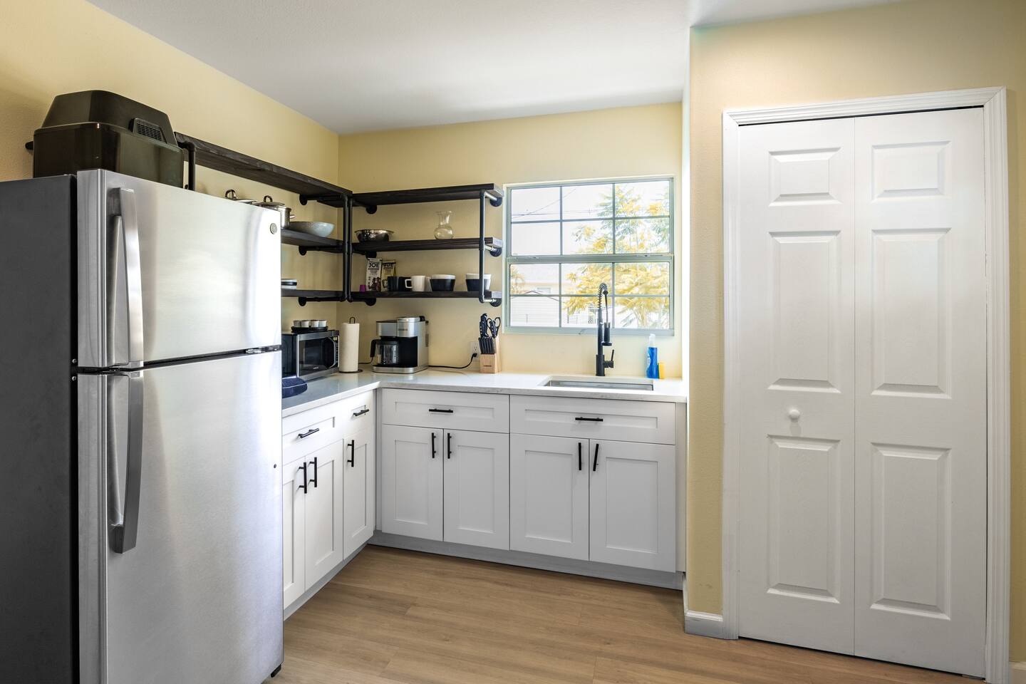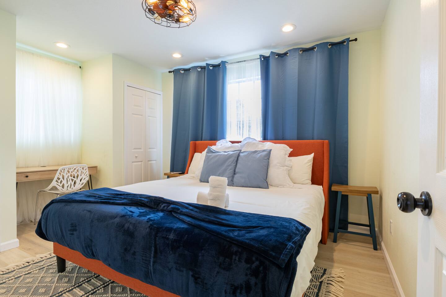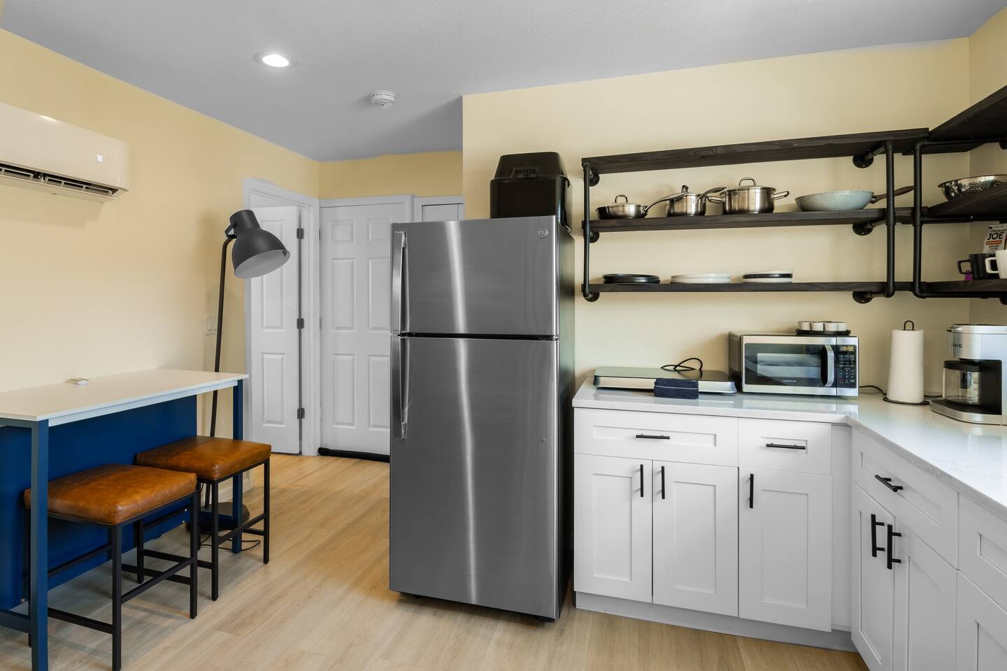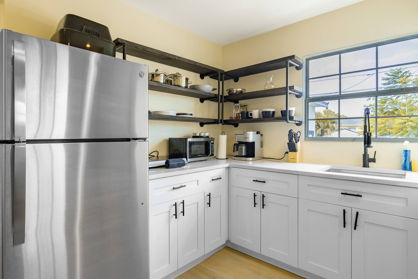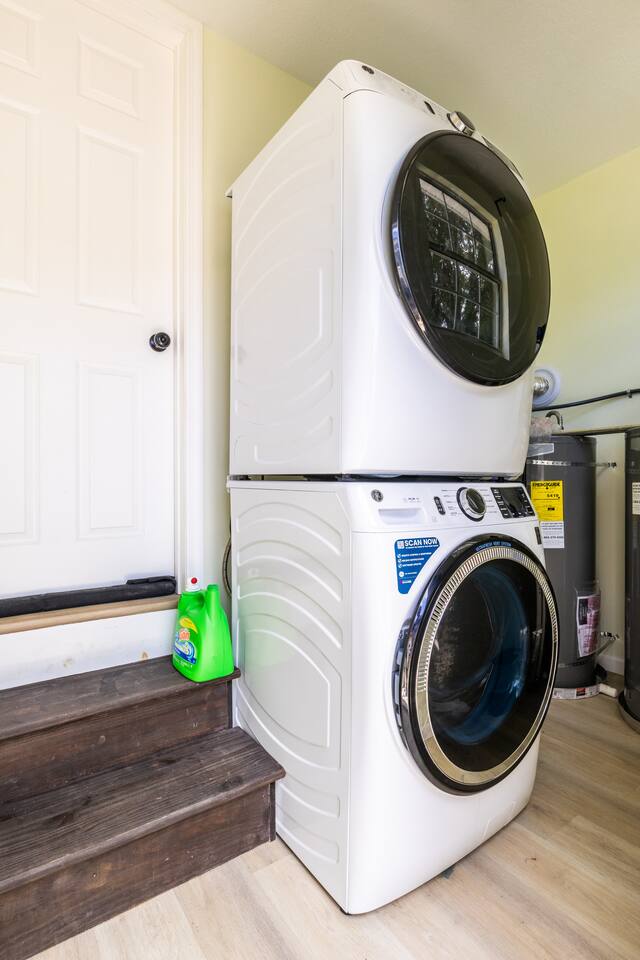 The most comfortable king size bed you’ve ever slept in. A starter supply (trash bags, coffee pods, toilet paper, dish soap) is provided on check-in day. These items won’t be restocked—guests are responsible for any extras needed during the entire stay.