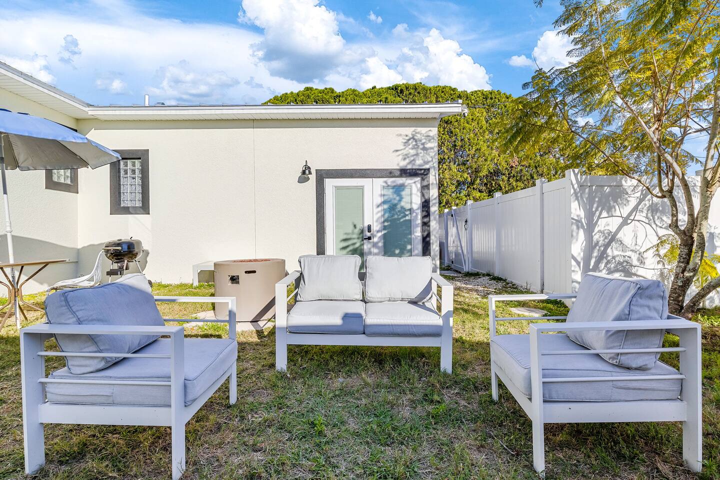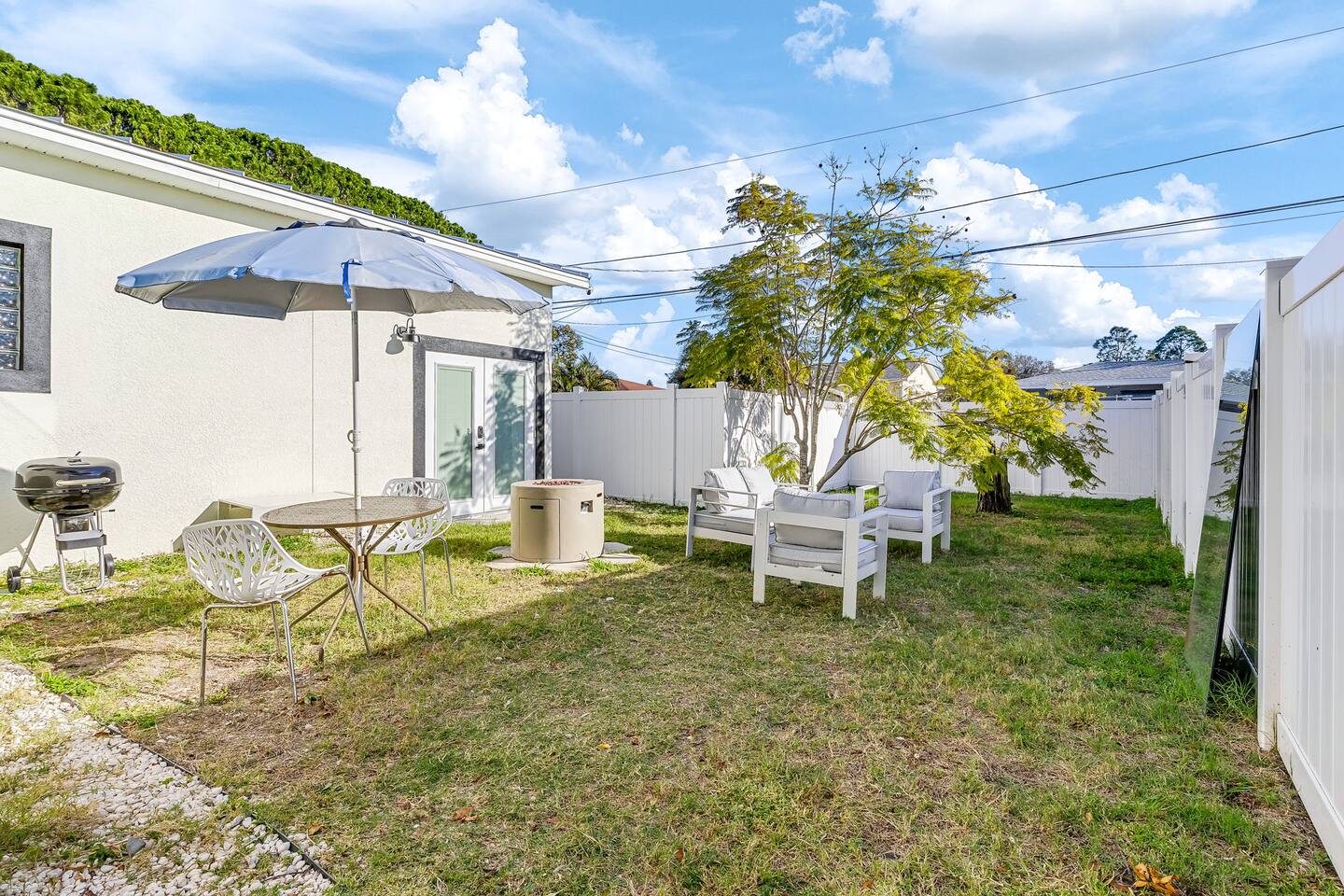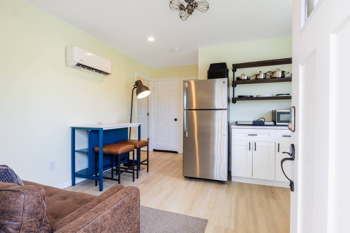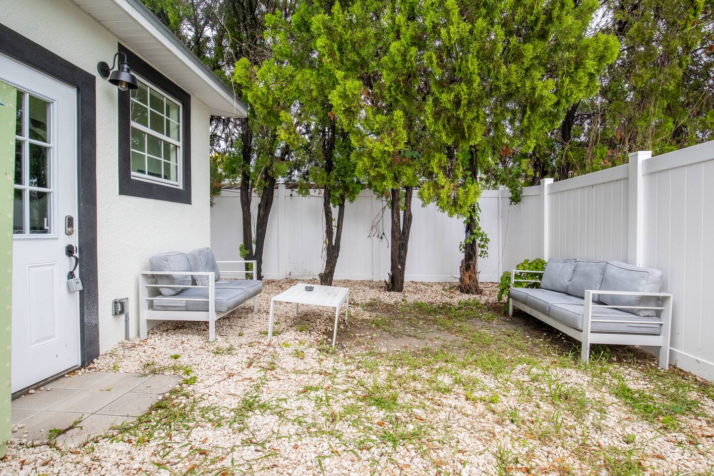 Welcome to this bright and sunny, brand-new, ground-up construction apartment! We thought of everything. The kitchen features beautiful quartz countertops, a dishwasher, an ice maker, an air fryer, and a portable cooktop. Open-concept living and dining, and bedroom furnished with a luxurious king-size bed. Central AC. The bathroom features a rain shower head and tub perfect for bathing your dog! Enjoy a fully fenced-in backyard with tons of room for your pup to run around all day!
