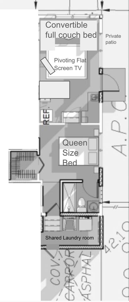Forget your worries in this spacious and serene space. Welcome to our pet-friendly 1-bedroom with an on suite bathroom haven! This charming space is perfect for a relaxing getaway with your furry friends. A private rental unit in one of 4 units. Fully equipped kitchen: complete with a dishwasher, microwave, air fryer, 2 burner induction cooktop, ice maker, espresso machine and coffee maker. Convenient location: Enjoy free parking and free laundry right outside your unit, on the premises.