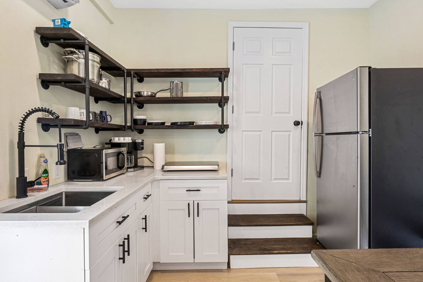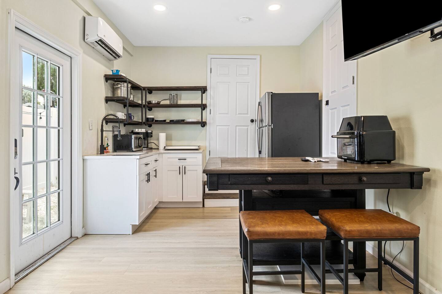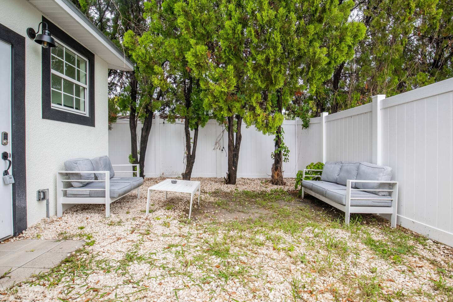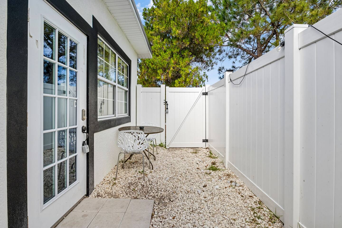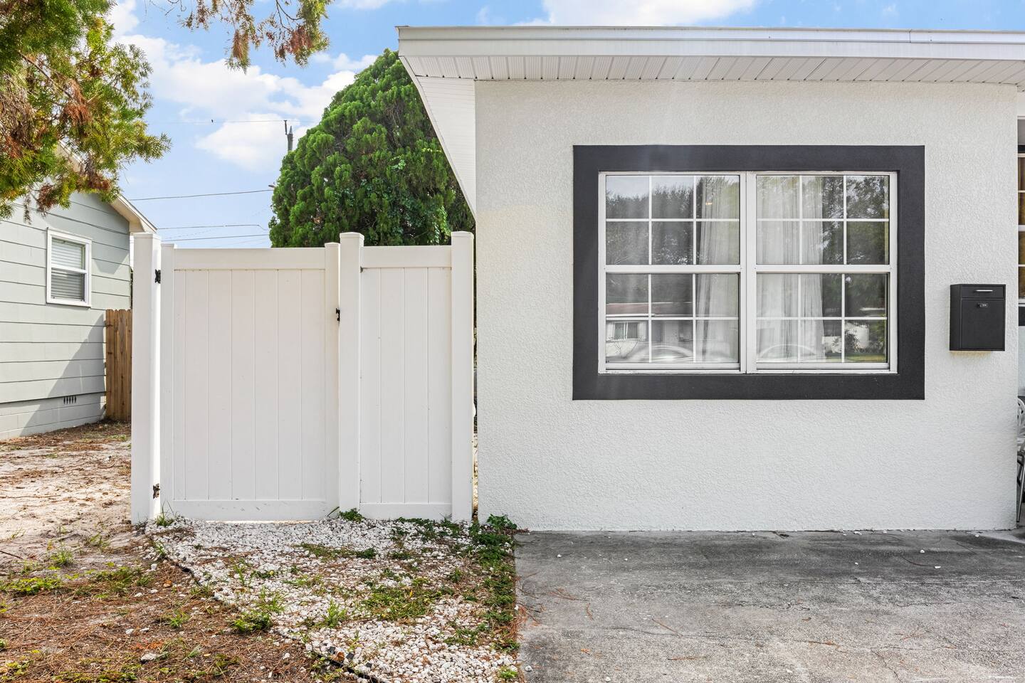 The Serene green boasts of space in this 4 unit building. It has a large walk in closet, an on suite bathroom in the bedroom and full kitchen/dining area equipped with a large flat screen TV. It is also connected directly to the laundry room for guest convenience. This pet friendly unit has a beautiful fenced in backyard with a quaint patio table for waking up to the sunshine city with the perfect cup of coffee. This unit is one of 4 units in the building, it is conveniently located off of a major 4-lane road for easy access to the highway and downtown St. Pete. Please note that there is city noise associated with this location, as it is on a major transit route. We are located right in the heart of St Pete 10 min in either direction to downtown St Pete or the stunning white sandy beaches this area has to offer. Do not miss this opportunity to have the space of your dreams. A starter supply (trash bags, coffee pods, toilet paper, dish soap) is provided on check-in day. These items won’t be restocked—guests are responsible for any extras needed during the entire stay.