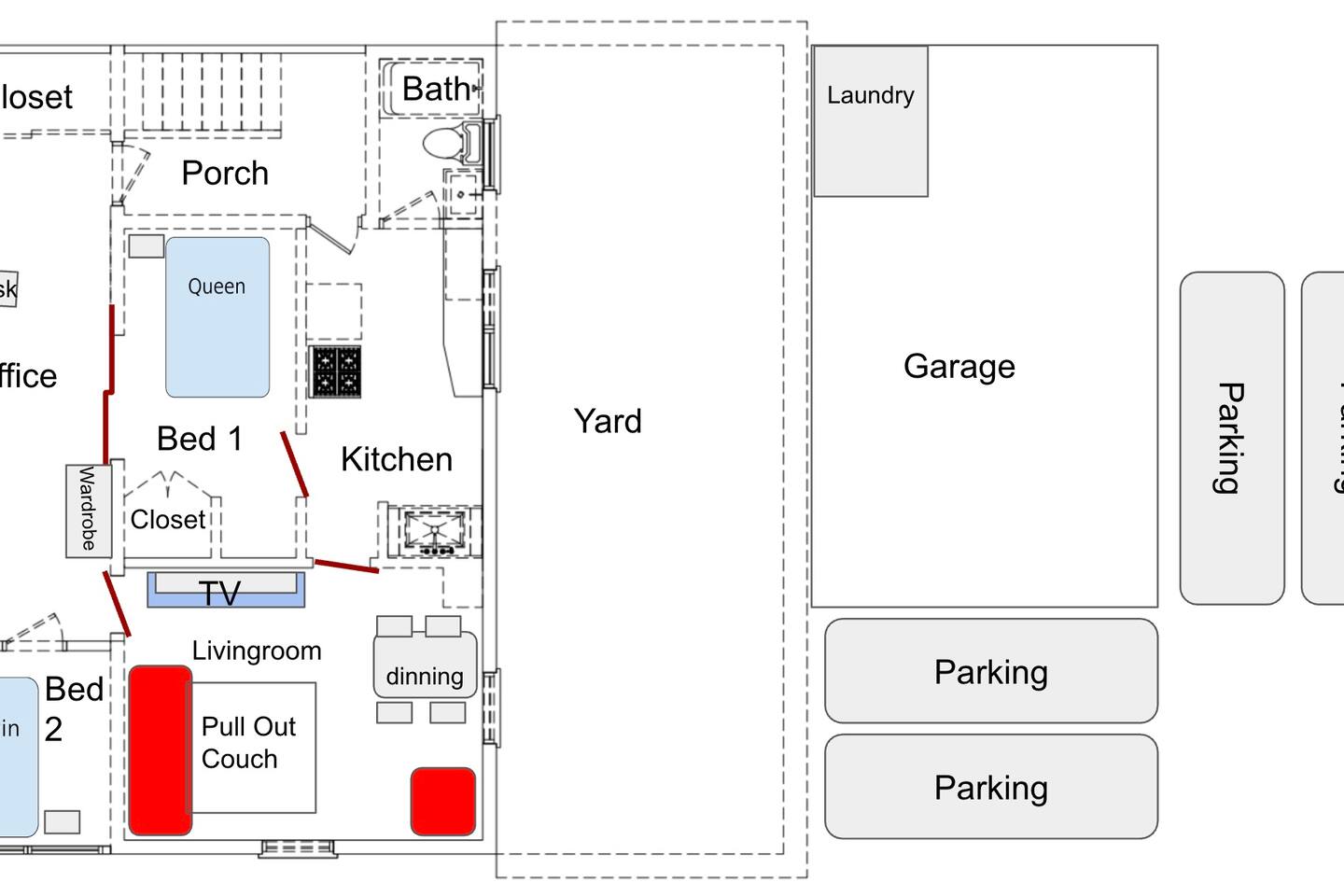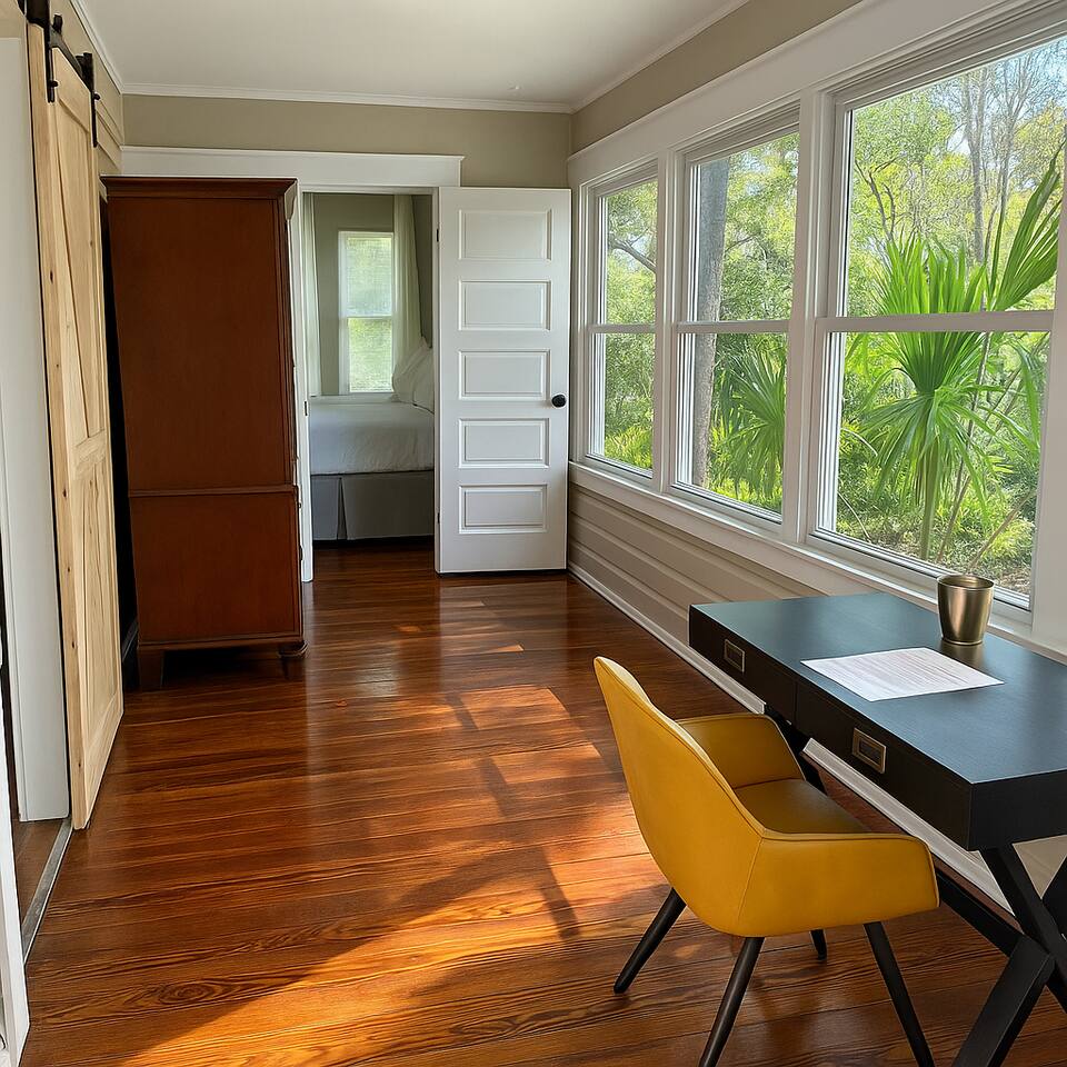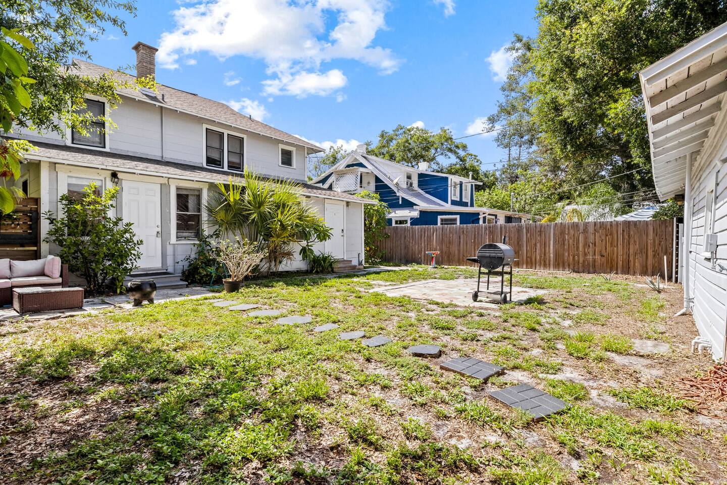 ✹ Gorgeous top-floor loft unit ✹ 2 cozy bedrooms; 1 queen, 1 twin daybed + 1 full-size sofa bed (airbed also available) ✹ 1 full bathroom w/ a shower/bathtub combo ✹ Full kitchen w/ modern appliances ✹ Keurig machine + complimentary coffee ✹ Open-concept living space w/ 52” smart TV + dining area ✹ High-speed wifi + dedicated workspace (2nd desk on request) ✹ Comfortable environment w/ central AC, heating + ceiling fans ✹ Peaceful backyard w/ BBQ grill, fire pit + comfortable seating (shared w/ 2 other units) ✹ Furry friends welcome ✹ Shared access to washer/dryer in garage (paid) ✹ Room to park a boat + bike storage facilities ✹ Free parking for up to 4 vehicles (first-come, first-served) ✹ One garage parking space ✹ Exterior security cameras ✹ Central location, short walk to local restaurants, groceries + parks ✹ Easy access to nearby attractions ✹ Long stays encouraged Eager to Read More? Here Are A Few Kind Words From Our Previous Guests: “great place, quiet and Allie was an amazing host, she's so kind and very responsive.” –Jorge “Good place for a short stay” –Jonathan “CENTRALLY LOCATED, PEDESTRIAN DISTANCE FROM DOWNTOWN, RESTAURANTS,PHARMACY,COFFEE SHOP WITHIN WALKING DISTANCE, ALL AS EXPECTED.” –Nicolo ★★ BEDROOMS ★★ The two private bedrooms feature super comfortable beds, ceiling fans, and cozy decor to ensure a great sleep. For larger groups, there is additional sleeping space available on the full sofa bed in the living room, or you can request an airbed for the spacious entryway. ✹ Primary Bedroom: Queen-sized bed w/ memory foam mattress + enchanting light feature ✹ Bedroom 2: Twin-size daybed, vibrant decor + reading lamp ✔ Ceiling fan ✔ Additional air bed available (please request in advance) ✔ Ample closet space ★★ BATHROOMS ★★ The full bathroom is sparkling clean and stocked with fresh towels for your convenience. Choose between a refreshing shower or a leisurely soak in the tub thanks to the shower/bathtub combination. ★★ KITCHEN & DINING ★★ Cook delicious meals for the whole group in the bright, open kitchen. Start your days off right with a hot coffee from the Keurig machine. Enjoy spacious countertops and all the essentials. Natural light floods in from the large windows, which also allow you to keep an eye on your kids or pets in the backyard. ✔ Fully stocked kitchen w/ modern appliances (including full-size refrigerator + oven) ✔ Keurig Plus coffee maker + coffee pods ✔ Basic cookware + dinnerware ✔ Bar-height dining table w/ 4 chairs ★★ LIVING ROOM ★★ Put your feet up in the vintage-style living room. Relax with your favorite TV shows, chat with your loved ones, or lose yourself in a good book. The original, 100-year-old hardwood floors add to the elegant yet cozy ambiance. The brand-new sectional opens for extra sleeping space. ✔ 52” flat-screen TV w/ Roku ✔ Comfortable sectional w/ full-size bed ✔ Gorgeous hardwood floors + natural light ✔ Open design for seamless transitions ★★ ENTRYWAY/OFFICE ★★ The spacious entryway doubles as an office and extra sleeping space. Windows running its entire length let in beautiful natural light, making remote working a pleasure. ✔ Desk + chair (extra workspace available on request) ✔ Fast wifi ✔ Airbed available on request ★★ OUTDOOR SPACE ★★ The fully fenced backyard is a safe space for kids and furry family members to run around. Enjoy the glow of the string lights and cozy fire pit as you tuck into a delicious grill. Shared with two other units, this peaceful yard is the perfect spot for getting some fresh air and meeting other guests. ✔ Large backyard w/ comfortable outdoor furniture + fire pit ✔ Paved patio w/ BBQ grill ✔ Garage w/ full-size washer + dryer (fee applies) ✔ Backyard + garage are shared w/ 2 other units ✔ Bike storage ★★ ACTIVITIES/ATTRACTIONS ★★ St Petersburg isn’t nicknamed “The Sunshine City” for nothing! Fun outdoor recreation, arts and culture, shopping and dining, and stunning shorelines are just minutes from our home by foot, bike, or car. Check out some of the exhilarating options available: Outdoor and Nature ✔ Sunken Gardens (0.8 miles) ✔ Vinoy Park (1.1 miles) ✔ St Pete Beach (8.7 miles) Arts and Culture ✔ American Stage Theatre Company (0.8 miles) ✔ Museum of Fine Arts (1 mile) ✔ Chihuly Collection (1.1 miles) Family-Friendly ✔ Great Explorations Children’s Museum (0.8 miles) ✔ St Petersburg Saturday Morning Market (0.8 miles) ✔ North Shore Aquatic Complex (1 mile) Dining and Shopping ✔ Grand Hacienda – best Mexican food in the area (0.3 miles) ✔ The Shrimp Store – charming seafood restaurant (0.3 miles) ✔ Central Avenue – unique boutiques, trendy cafés + diverse restaurants (1.3 miles) All these activities and more are within your reach when you book with us! Parking - Street parking is available but is based on a first-come-first served basis. No parking space is guaranteed. A starter supply (trash bags, coffee pods, toilet paper, dish soap) is provided on check-in day. These items won’t be restocked—guests are responsible for any extras needed during the entire stay.