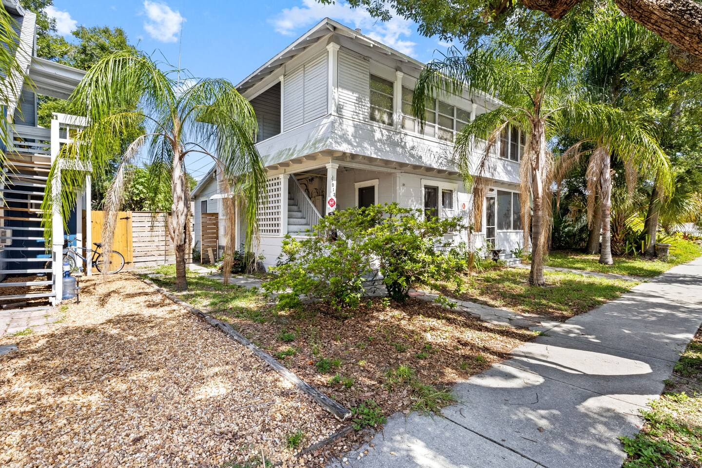 This charming vintage pet-friendly condo is nestled in a beautiful brick paved neighborhood. A classic favorite for it's ease of access to local restaurants and downtown nightlife. Featuring large windows, hardwood floors, a dedicated workspace, and a fenced backyard with lush landscaping, this top floor condo offers the perfect blend of convenience and comfort that feels like being in a treehouse. Crescent Lake Park – 9 min walk Dali Museum – 12 min walk St. Pete Pier – 7 min walk